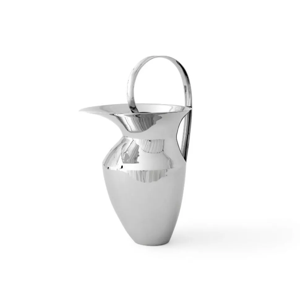 Lige dele praktisk og smuk, den fejende silhuet af den etruskiske kande er formet af spejlpoleret rustfrit stål for et slidstærkt, men elegant finish. Dens overdrevne proportioner inkluderer et højt, buet tophåndtag og en tilspidset tud for nem hældning. Det voluminøse design giver et lige så modigt statement, når man serverer kølede drinks ved bordet, som det gør som et dekorativt objekt eller blomstervase.