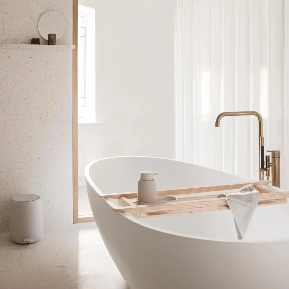 Enkel og tidløs pedalspand, der på fineste vis forvandler nødvendighed til et dekorativt element. Spanden er designet med afrundede kanter og en blød overflade med en udsøgt silkemat finish. Spanden er tilmed udført med en soft-close funktion, der forhindrer låget i at smække. Beholderen indeholder en aftagelig plastikspand, som er nem at rengøre.