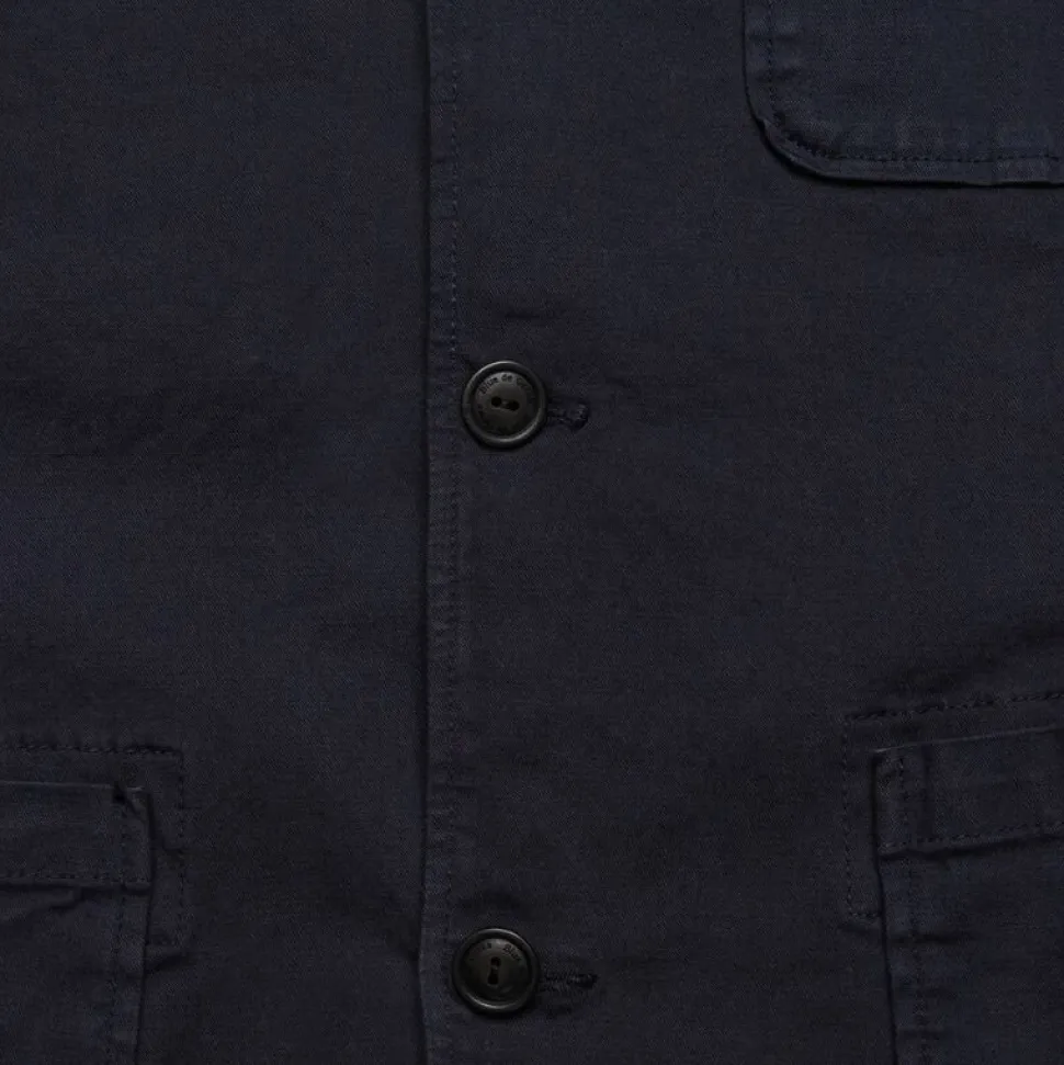 Gabbiano Dobby Blazer er inspireret af klassiske viceværtsjakker, men opdateret med et nutidigt twist. Den har en afslappet pasform og er fremstillet i en 10 oz bomuldsblanding med komfort stretch, som giver både bevægelsesfrihed og en struktureret silhuet.