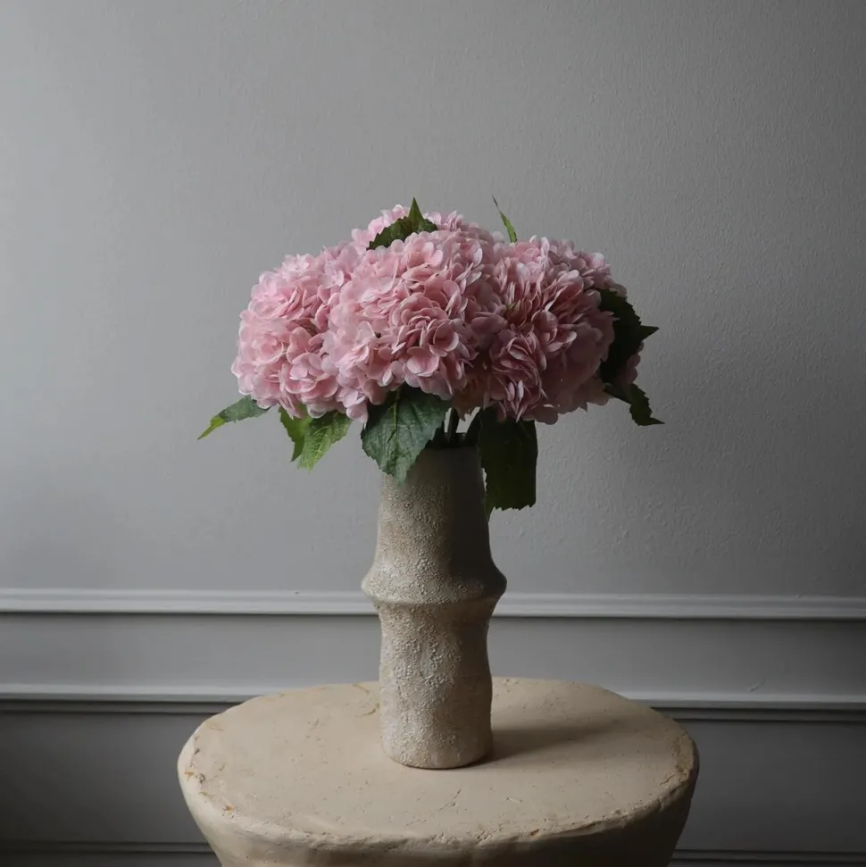 Yndefuld og fortryllende Hortensia-blomst, der på fineste vis komplementerer enhver setting i boligindretningen. Det fulde blomsterhoved er fyldt med detaljer – herunder individuelle kronblade og naturtro tekstur, der inviterer til berøring. Bladene er skabt med autentiske årer og en levende farvenuance, der bidrager til et livagtigt udseende. Blomsten er designet til at være alsidig, hvorfor stilken kan bøjes og formes efter eget ønske. Lad kreativiteten blomstre!