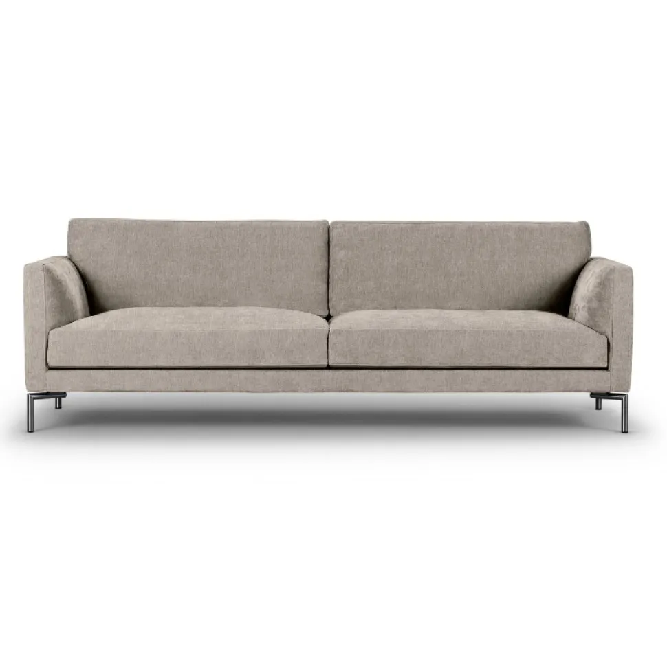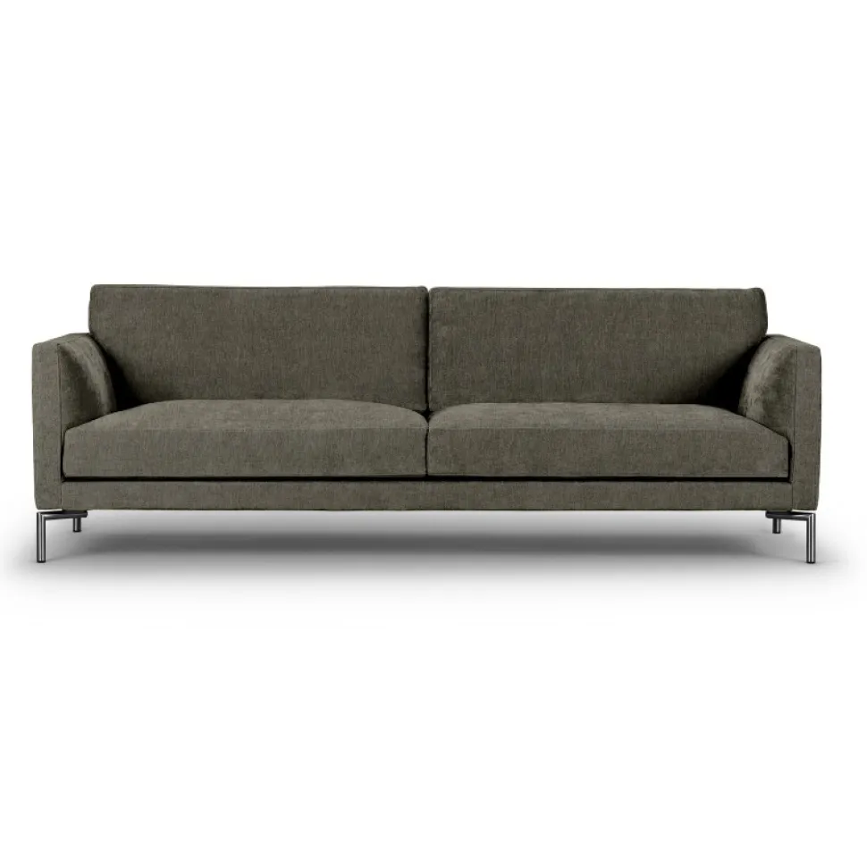 Denne model måler 240 x 90 cm og er betrukket med det smukke Level-stof, som tilføjer struktur og dybde til det rene udtryk. Sofaens slanke krop og ryghøje armlæn trækker tråde til den klassiske London-sofa, men her i en lettere, nutidig udgave.