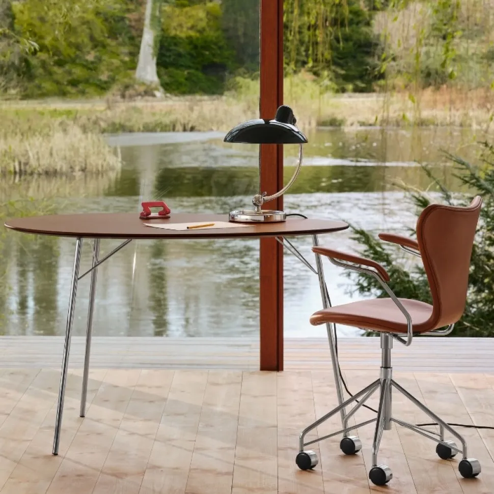 Æggebordet™ er et ikonisk design af Arne Jacobsen, skabt i 1952 som et naturligt supplement til hans klassiske Myren™-stol. Bordets elegante, ellipseformede form og det nøje udvalgte materialevalg gør det ideelt til både den uformelle middag og som et stilfuldt skrivebord i hjemmet. Med sit tidløse udtryk og funktionelle design passer Æggebordet™ perfekt ind i moderne såvel som klassiske indretninger.