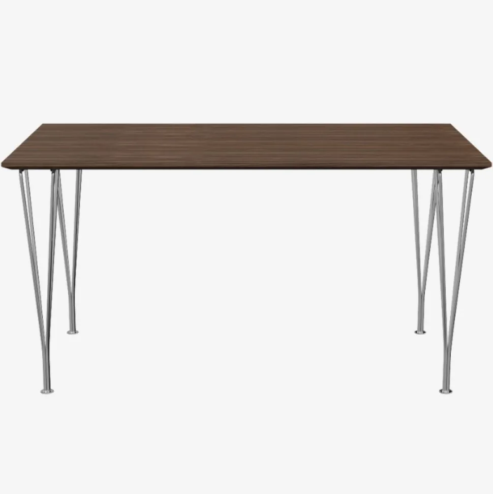 Meget elegant og stilrent spisebord designet af Piet Hein. B637 er et smukt, moderne møbel, som både er funktionelt og klassisk. Den fine rektangulære form passer godt ind i det moderne hjem, og B637 er derfor det perfekte spisebord. Det enkle design giver et roligt og harmonisk udtryk, som skaber en god atmosfære i hjemmet. Bordet fåes med aluminiumskant eller finérkant.