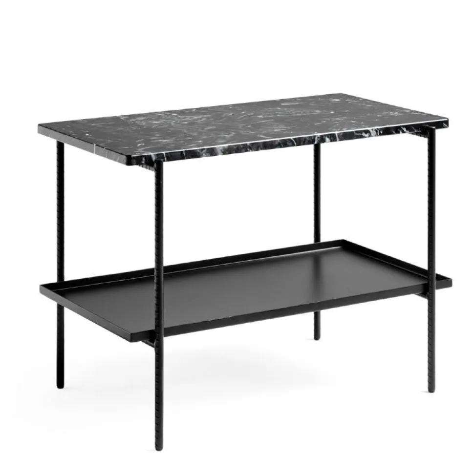 Sylvain Willenz’s rebar er en serie af sofa-, side- og bakkeborde, som sætter den forstærkede stålstangsramme sammen med marmortoppe og metalbakker for at skabe en afbalanceret æstetik. Bordene fås i forskellige størrelser i runde, firkantede og rektangulære former, med bordplader og stel i forskellige farvemuligheder.