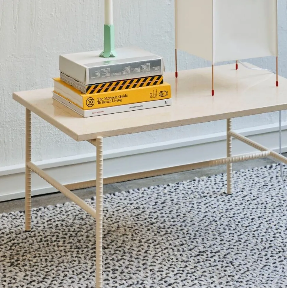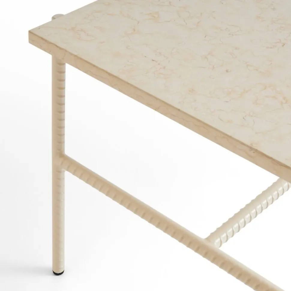 Sylvain Willenz’s rebar er en serie af sofa-, side- og bakkeborde, som sætter den forstærkede stålstangsramme sammen med marmortoppe og metalbakker for at skabe en afbalanceret æstetik. Bordene fås i forskellige størrelser i runde, firkantede og rektangulære former, med bordplader og stel i forskellige farvemuligheder.