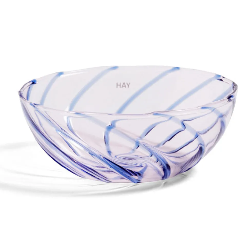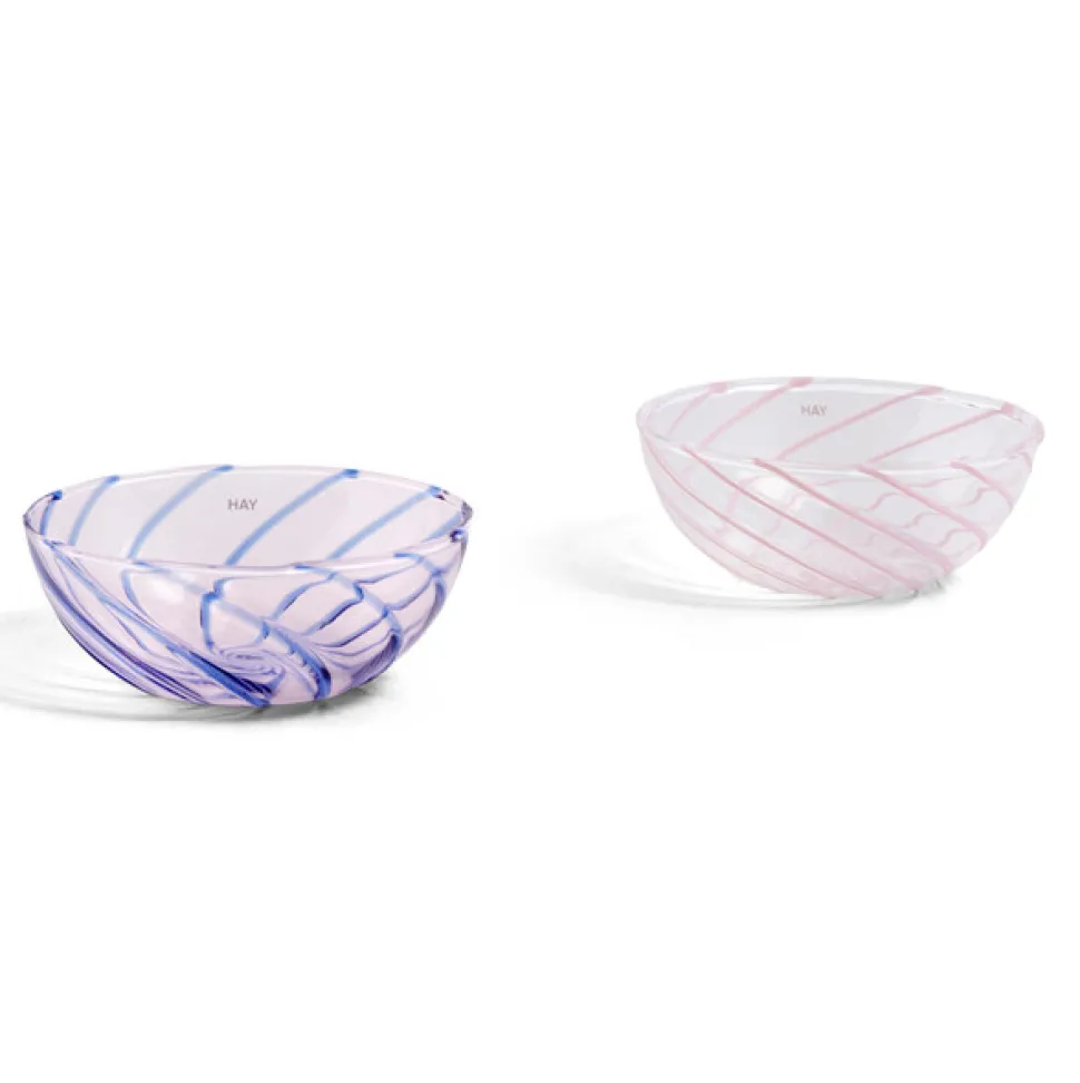 Enkle og finurlige skåle, som er fremstillet i borosilikatglas. I det farvede glas er et hvirvlende mønster, som skaber et elegant og karakteristisk design. Skålene er ideelle til servering af mad, opbevaring af små genstande eller bare til dekorative formål. Skålene findes i to forskellige farvevarianter og fås i sæt af to.