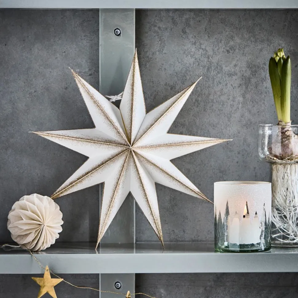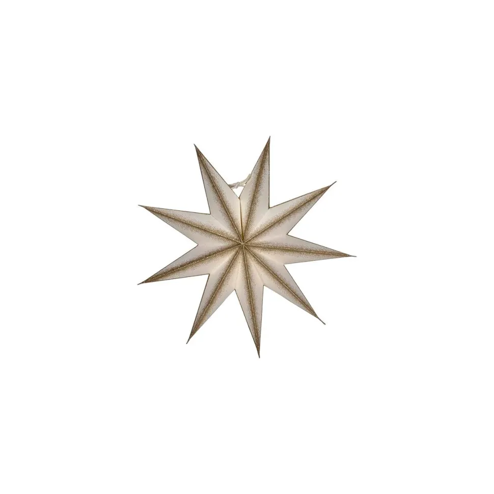 Yndefuld stjerne, der på fineste vis spreder julestemning i hjemmet. Den ni-takkede form forener moderne design med klassisk julehygge og skaber en fortryllende atmosfære i ethvert rum. Stjernen kan monteres med en lyskilde for at sprede et varmt og stemningsfuldt lys. Hæng den alene som et elegant blikfang, eller kombiner flere størrelser for et imponerende og harmonisk udtryk. Et eksklusivt og tidløst designelement, der tilfører juleudsmykningen både elegance, glans og en snert af eventyrlig magi.
