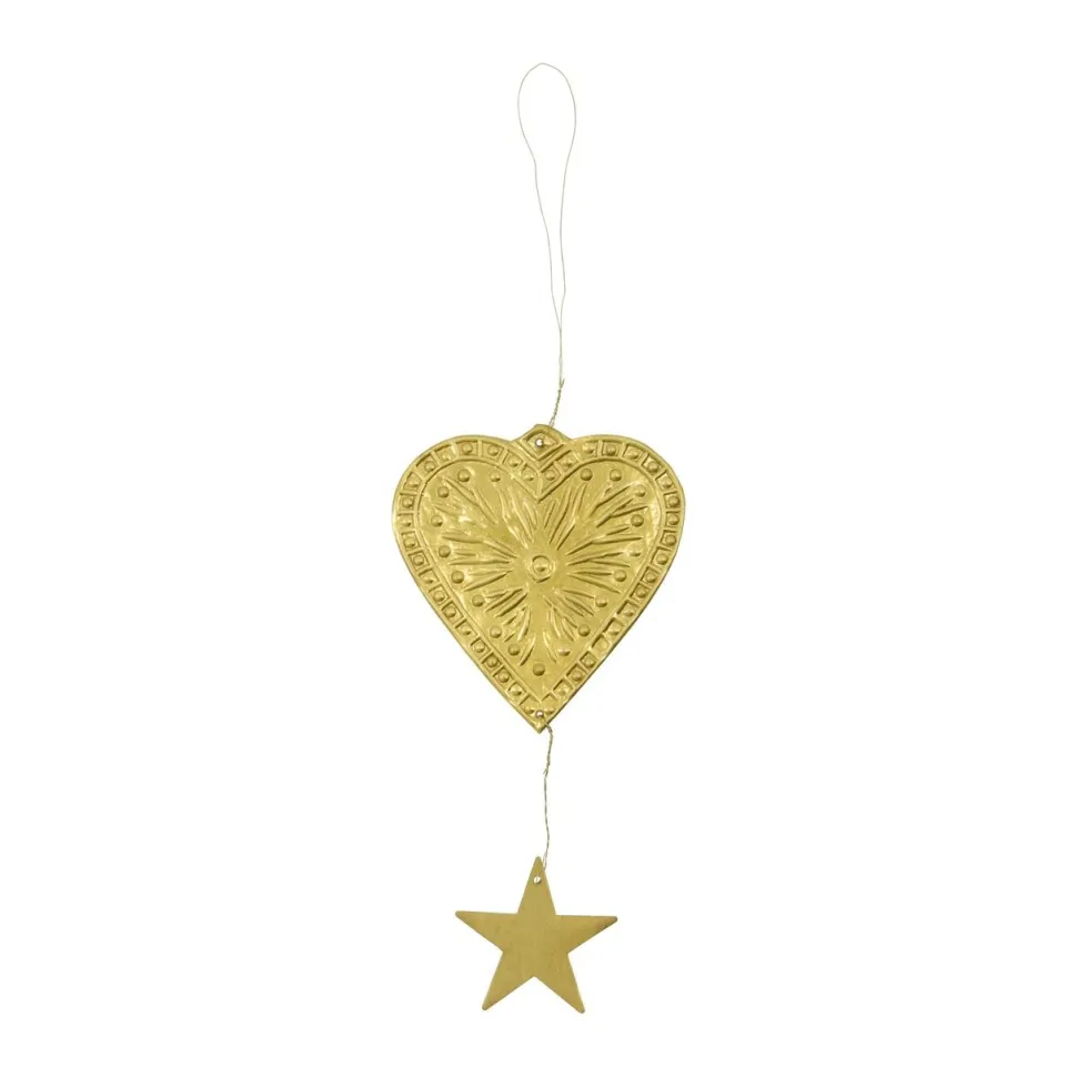 Fine ornamenter, der tilfører juleudsmykningen både varme og elegance. Håndlavede med omhu, præsenterer sættet tre unikke designs: en fugl, et hjerte og en stjerne, hver med en lille stjerne, der hænger dekorativt nedenunder. Den varme messingfinish skaber et klassisk og raffineret udtryk, ideelt til grene, vinduer eller juletræet. Ornamenterne giver en stemningsfuld detalje, der gør julen ekstra festlig.