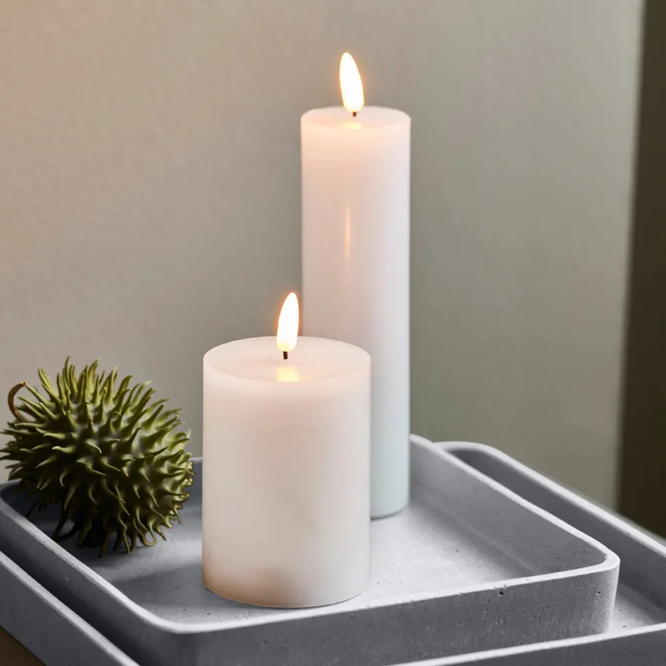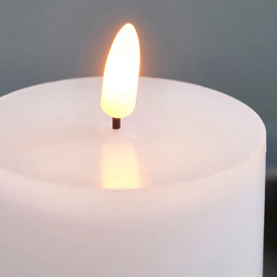 Nyd en hyggelig aften med dette lille, hvide LED-bloklys. Lyset ligner til forveksling et levende lys, men fordelen er blot, at man undgår varme, røg og flammer. Lyset er beklædt med en voksoverflade og har en blafrende, realistisk glød – næsten som levende lys. Såfremt man blive distraheret og glemmer at slukke lyset, slukkes det automatisk efter fem timer.
