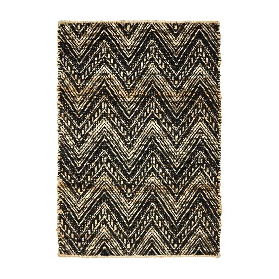 Håndvævet dørmåtte i den fineste bomulds- og juteblanding. Dørmåtten er udført med et fængslende etnisk mønster i naturlige og sorte nuancer. Måtten er et ideel at placere ved hoveddøren, indgangen til terrassen eller i et mindre rum, idet den både er funktionel og stilfuld. Dørmåtten tilføjer en varm og moderne æstetik og den håndlavede kvalitet sikrer en karakteristisk tilføjelse til hjemmet.