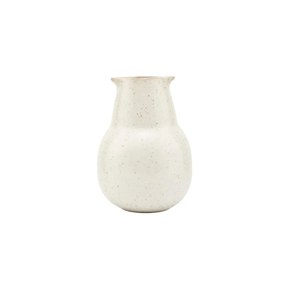 Harmonisk og formfuldendt kande, som i forbindelse med borddækningen sætter prikken over i’et. Kanden har et smukt udtryk og kan eksempelvis benyttes til servering af mælk, fløde eller dressinger. Den enkle, hvide glasering med pletter, tilfører tilmed kanden et afslappet, men alligevel stilfuldt udtryk.