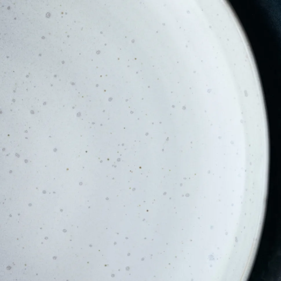 Enkel og yndig tallerken, som grundet sin størrelse er særdeles velegnet til frokost eller mindre aftensmåltider. Tallerkenen er lavet af porcelæn og udført i et enkelt og uformelt look. Som følge af glaseringens lyse, neutrale nuancer og plettede struktur er den smuk at kombinere med de tilhørende elementer fra Pion-stellet eller mønstrede skåle, for herved at skabe et unikt og finurligt touch.