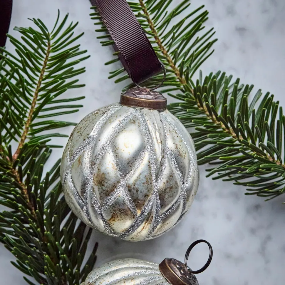 Håndlavet glasornament, der forener tradition og elegance i et tidløst udtryk. Den fine overflade med subtil glans og vintagemønster tilfører et klassisk og sofistikeret præg til enhver juledekoration. Julekuglen bærer præg af håndværkets finesse, hvilket gør den ideel som pynt på juletræet, eller som del af en dekorativ opstilling. En diskret luksus, der skaber en harmonisk og stemningsfuld jul.