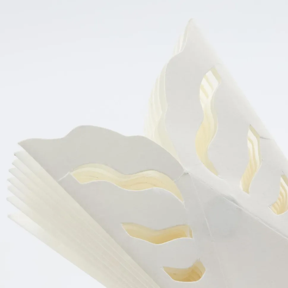 Yndefulde papirsornamenter, der emmer af tidløs elegance. Hvert ornament er udført med fine detaljer, der gør dem ideelle til juletræet, hængende fra grene eller som en del af en dekoreret borddækning. Ornamenterne kan kombineres med andre typer papirspynt eller andet med glimmerdetaljer for et elegant og glamourøst twist. Papirpyntets styrke ligger i dets alsidighed og de dekorative udskæringer, som forbliver smukke år efter år. Ornamenterne lukkes nemt og sikkert med magneter, hvilket gør dem praktiske og genanvendelige.