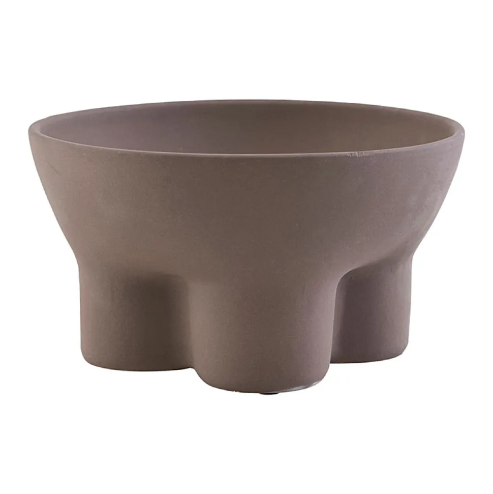 En rigtig fin og anderledes skål, der nærmest er en lille skulptur i sig selv. Skålen har en smuk form, der gør, at den sagtens kan stå for sig selv, men den kan også kombineres med dit yndlingsinteriør. Skålen har fire ben, der løfter skålen på elegant vis.