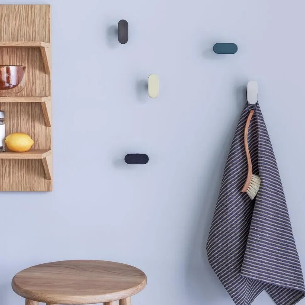 Elegant knage, der eksemplificerer, hvorledes funktionalitet og design kan forenes i sin reneste form. Knagen er designet med en stilfuld, sort finish, der tilfører indretningen et diskret, men sofistikeret udtryk. Qua det enkle og moderne formsprog er den ideel i ethvert rum, hvor der ønskes et rent og harmonisk udtryk. Trods sin kompakte størrelse er den stærk og holdbar – en lille detalje, der gør en stor forskel i hjemmets æstetik og organisering.
