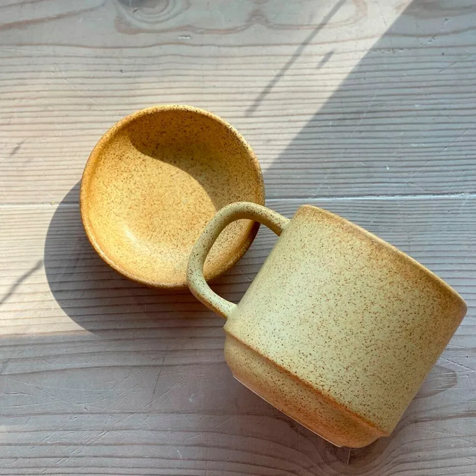 Enkel og farvefin kop, der er udført i et minimalistisk design. Koppen er skabt med stor kærlighed til keramik og funktionalitet – og den fine, varierende glasur tilfører koppen et unikt udtryk. Koppen er designet med hank, og bunden af koppen er formet, således den nemt kan stables. Kruset er dansk design, men fremstillet i udlandet. Dette gør koppen helt unik, hvorfor farven kan variere.