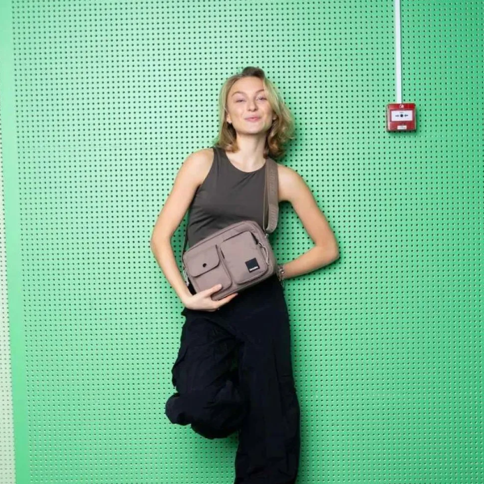 Tidløs og kompakt taske, som er yderst rummelig. I hovedrummet er der massere af plads, hvorfor en vandflaske og andre væsentlige ting let kan opbevares heri. Tasken er designet med tre indvendige lommer og to udvendige sektioner, der holder alt på plads. Lynlåse, metalbeslag og armeringen er lavet af konventionelle materialer. Tasken er yderst velegnet til folk, der er på farten – uanset mission.