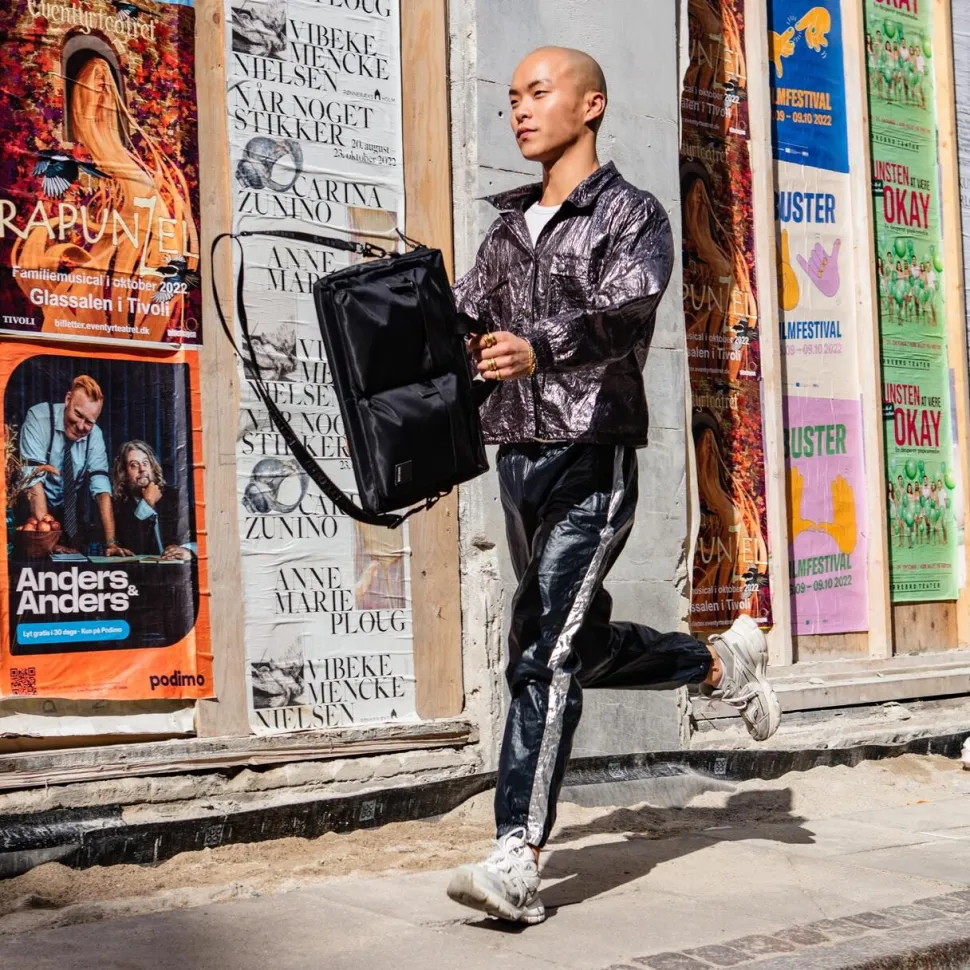 ‘SAGE’ er en slank computertaske, som er ideel til skole eller arbejde. Tasken er udført med flere indvendige lommer, samt en stor frontlomme, hvilket sikrer rummelighed og plads. Kombinationen af nylonkvalitet, sort metalbeslag og bio-baseret alternativ svampelæder gør tasken velegnet til enhver professionel lejlighed. Tasken er tilmed oplagt at medbringe på længere ture, som følge af trolleyremmen på bagsiden.