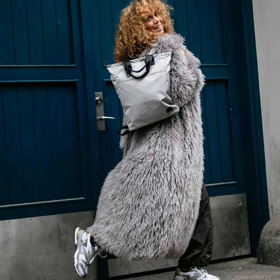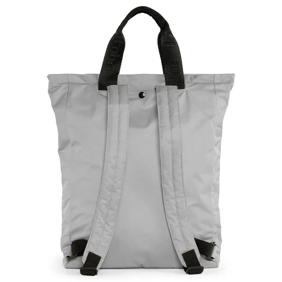 Slank, vandafvisende cabriolet taske, der kan benyttes som både mulepose og rygsæk. Tasken er designet med aftagelige skulderstropper, som kan skjules i baglommen. Herudover er den udført med lynlåsåbning og bærehåndtag. Foran har den store stiklommer og en hummerlås, som er ideel til vedhæftning af småting. Indvendigt har den et dedikeret computerrum, mesh og en lynlåslomme. Den genanvendte polyester kvalitet, metal spænder og detaljer i svampelæder tilføjer en unik, urban stemning til det minimalistiske look.