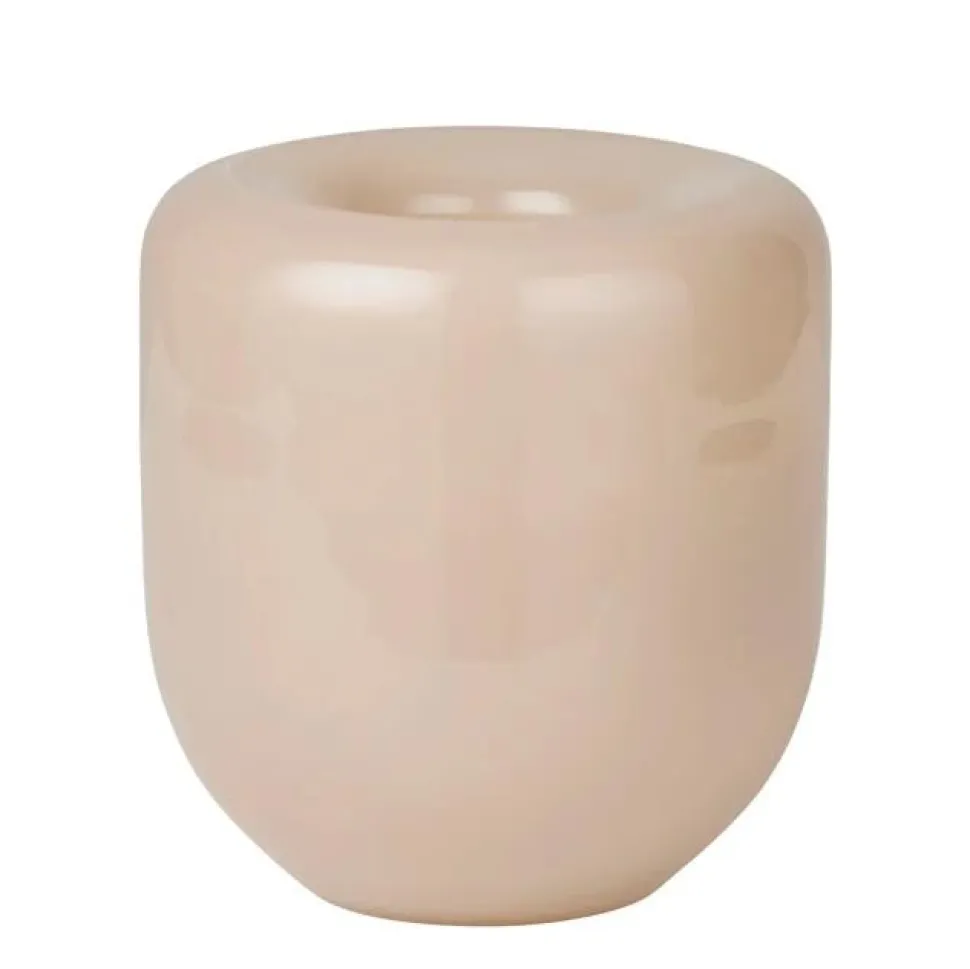 Lille og mundblæst glasvase med en blød og minimalistisk silhuet. Vasen er udført i et moderne design, hvorfor den både tjener som skulptur og blomstervase. Farvenuancen er blød og behagelig, hvilket på fineste vis understøtter vasens formsprog, der demonstrerer et unikt samspil imellem form og funktion.