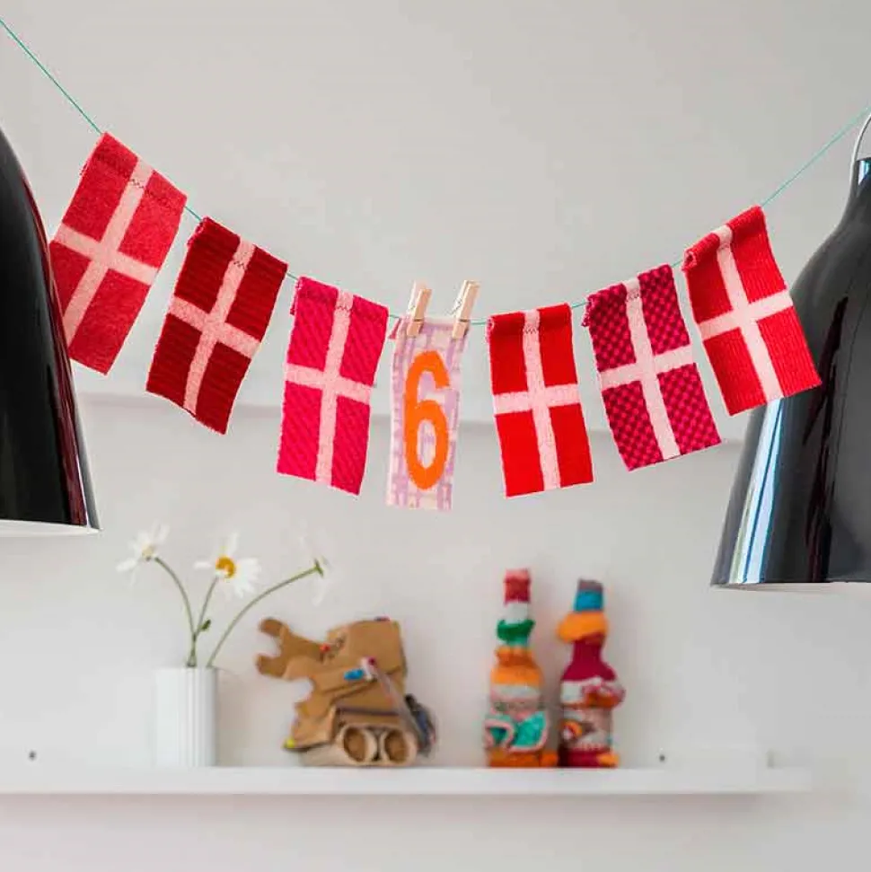 De super fine og festlige flag fra Linedyr er helt perfekt til fejring af fødselsdage og større begivenheder. Dannebrogsflagene er strikket i det blødeste merinould og passer fint sammen de andre strikkede bogstaver, tal og tegn fra Linedyr. Overrask dit barn ved at sætte et festligt flag på barnets navneranke på fødselsdagen. Flagene er også søde at sætte på en bogstavsranke til en barsels- eller dåbsgave.