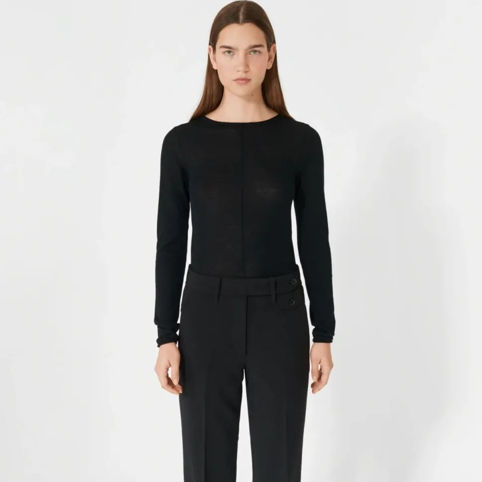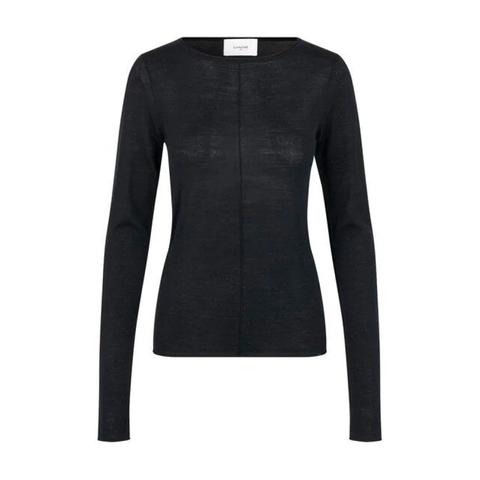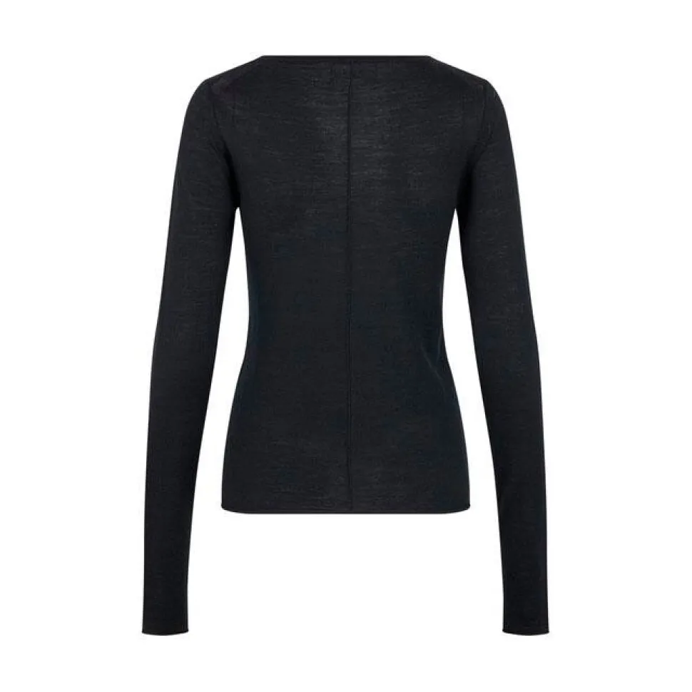 Oplev den ultimative kombination af komfort og stil med denne fine, tidløse strik. Den tætsiddende pasform fremhæver ens silhuet, mens den lette merinould tilbyder både blødhed og varme. Desforuden tilføjer bådudskæringen et sofistikeret udtryk. De lange ærmer og rullekanterne forneden skaber en elegant og feminin silhuet, der er ideel til lag-på-lag styling. Det diskrete, broderede logo foran tilfører endvidere et eksklusivt og subtilt statement. Denne strik er den ideelle base for et stilfuldt og tidløst look.