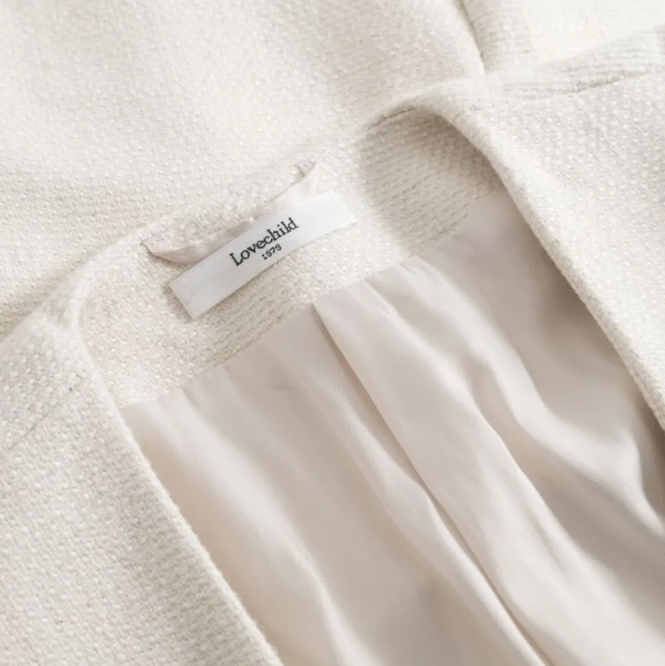 Denne smukke jakke kombinerer klassiske snit med feminine detaljer og er skabt i en let og åndbar blanding af 55% hør og 45% bomuld. Designet er karakteriseret ved en rund, dyb halsudskæring og en tætsiddende talje, som fremhæver figuren på elegant vis.