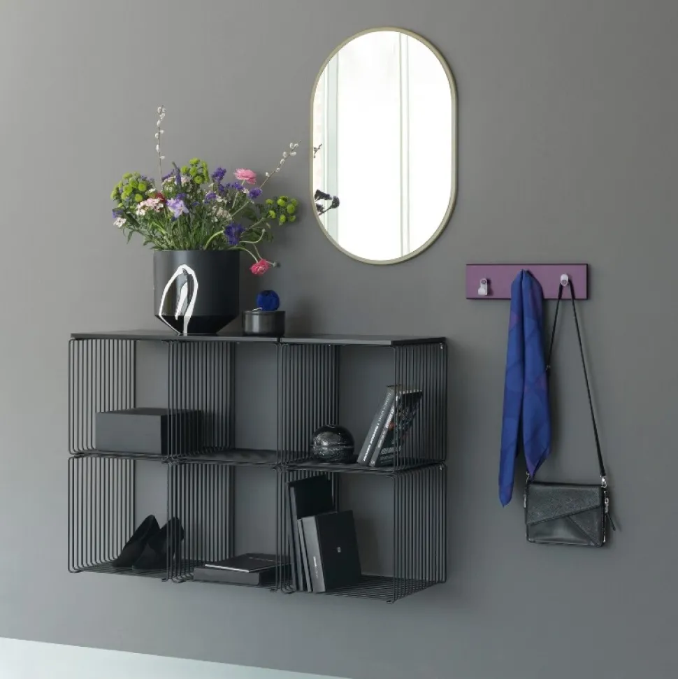Brug den enkeltvis eller sammensæt flere moduler for at skabe et møbel der passer ind i din personlige boligindretning. Montana Verner Panton trådreolen kan bruges i flere af hjemmets rum på gulvet, væggen eller som rumdeler.