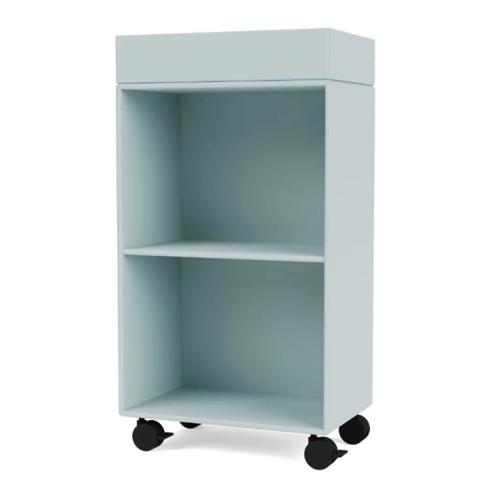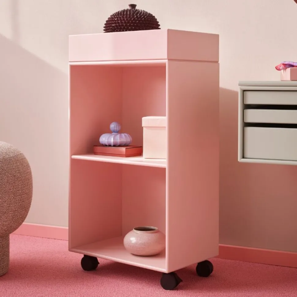 PREPPY er en badeværelsesvogn og mobil opbevaring på hjul lavet af 12 mm vandafvisende MDF. Modulet har to rum og en elegant bakke på toppen. PREPPY er ideel til opbevaring af dine håndklæder, wellness- og skønhedsartikler – eller til styling såsom planter.