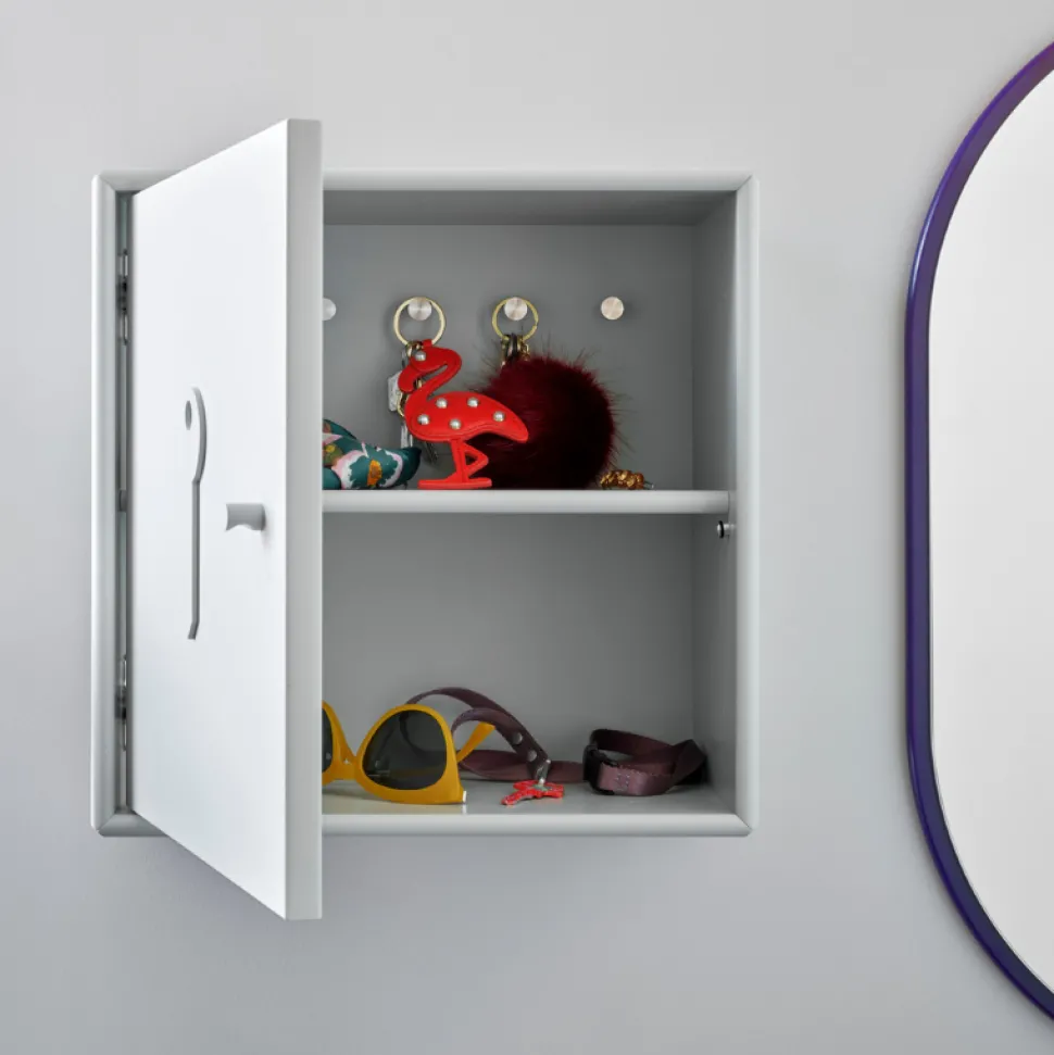 Et flot og stilrent nøgleskab designet af Peter J. Lassen. Det lille skab hænger på væggen og er helt ideelt til opbevaring af nøgler og andre småting i entreen eller på kontoret.