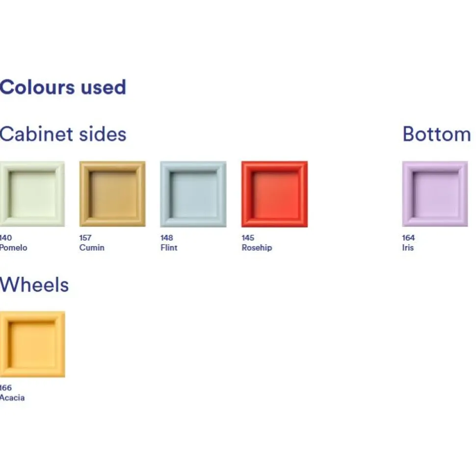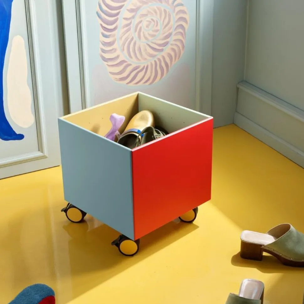 KIMPOP COLOR BOX I på sine knaldgule hjul er klar til at lyse din dag op! Dette legende opbevaringsmøbel kombinerer æstetik med ubesværet mobilitet, hvilket gør det perfekt til at holde dine ting inden for rækkevidde. Fra legetøj til værktøj tilføjer det et skud af glæde og en farvenuance, som- uanset hvad, gør opbevaring til en munter fornøjelse