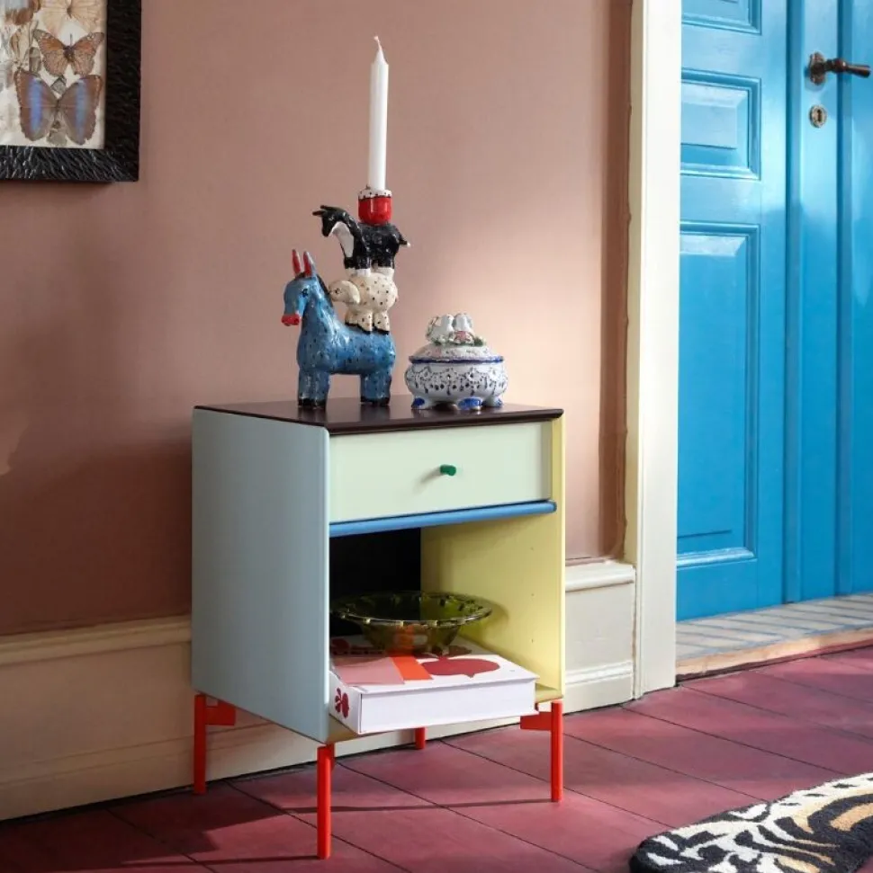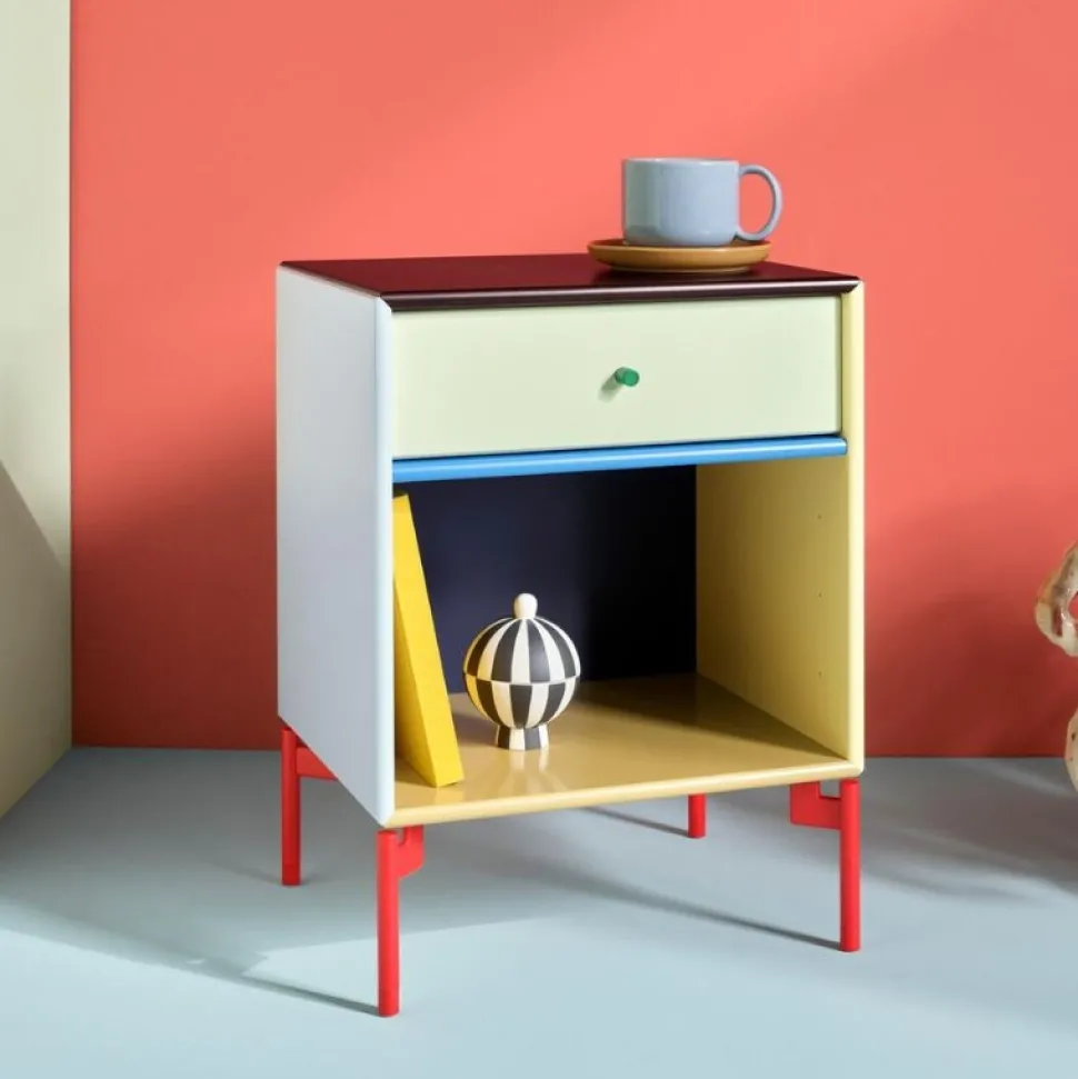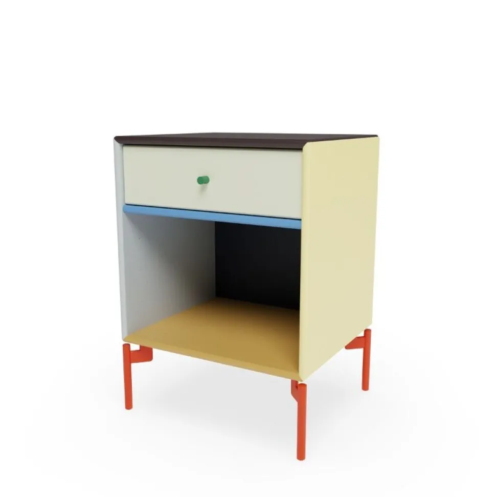 Stående på slående røde ben, er KIMPOP DREAM et sengebord, som holder dine essentielle ting inden for rækkevidde mens de ledsager dig gennem natten. De legende farver byder dig velkommen med en munter start til lyse og glade dage