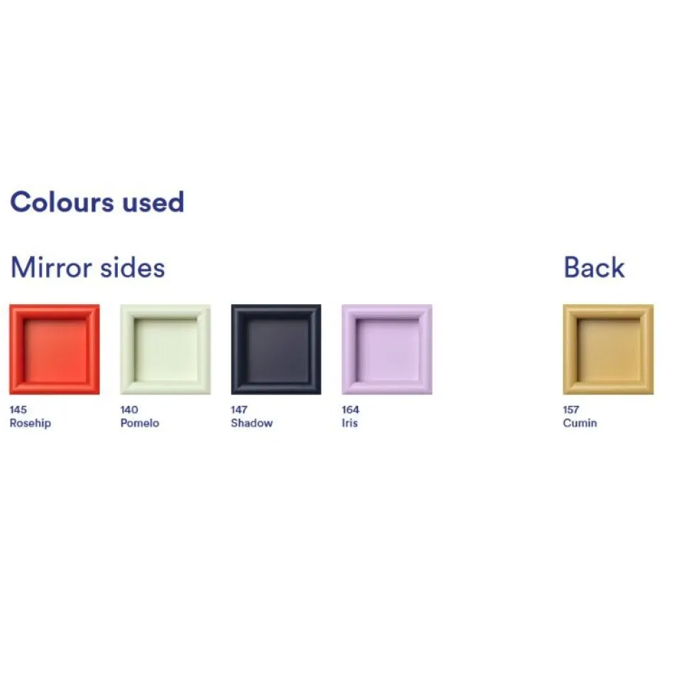 Fire fantastiske nuancer rammer dit ansigt, mens du kigger ind i. Samspillet mellem levende farver og spejlet selv skaber en legende, dynamisk effekt, der er fed, sjov og elegant på én gang
