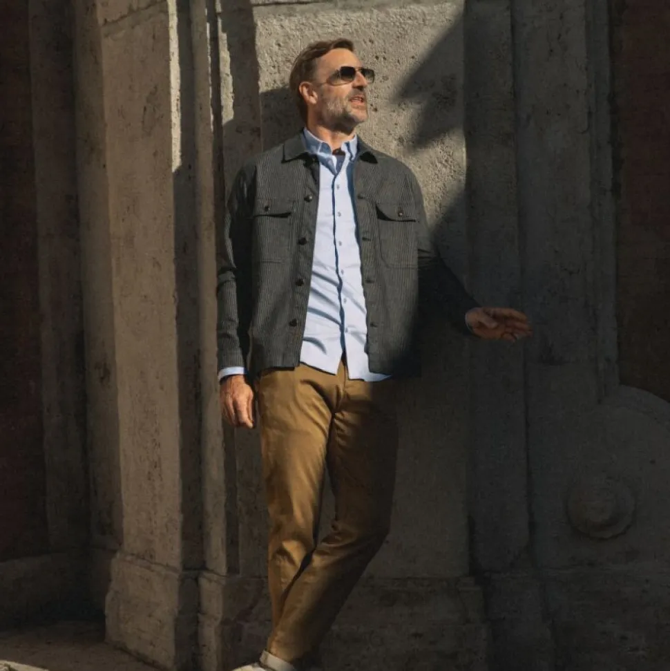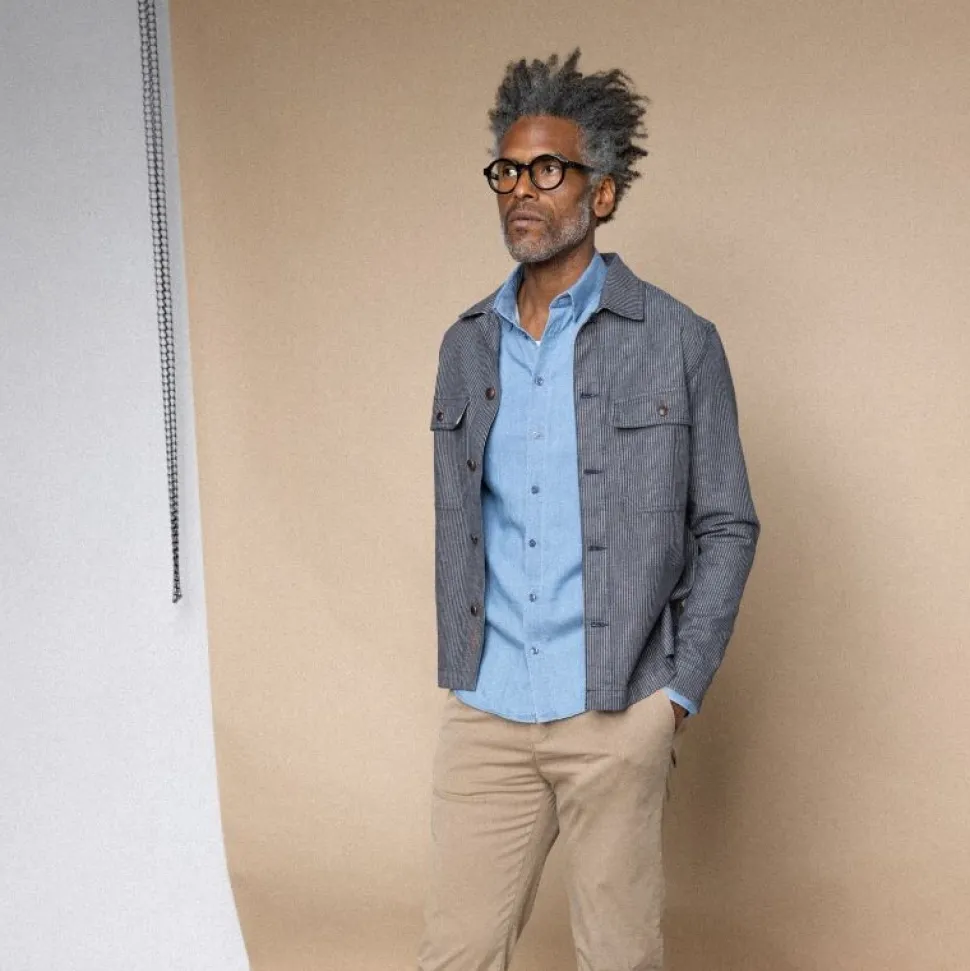 Denne stribede overskjorte kombinerer cool attitude med et elegant udtryk. Med klassiske detaljer som knaplukning, krave og to brystlommer, er den inspireret af den rå workwear-stil. Brug den over en enkel T-shirt og kombiner med cargobukser for et afslappet look med stil.