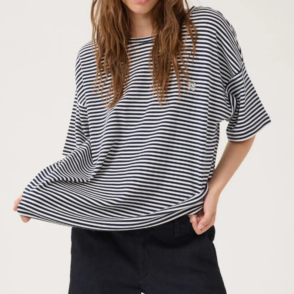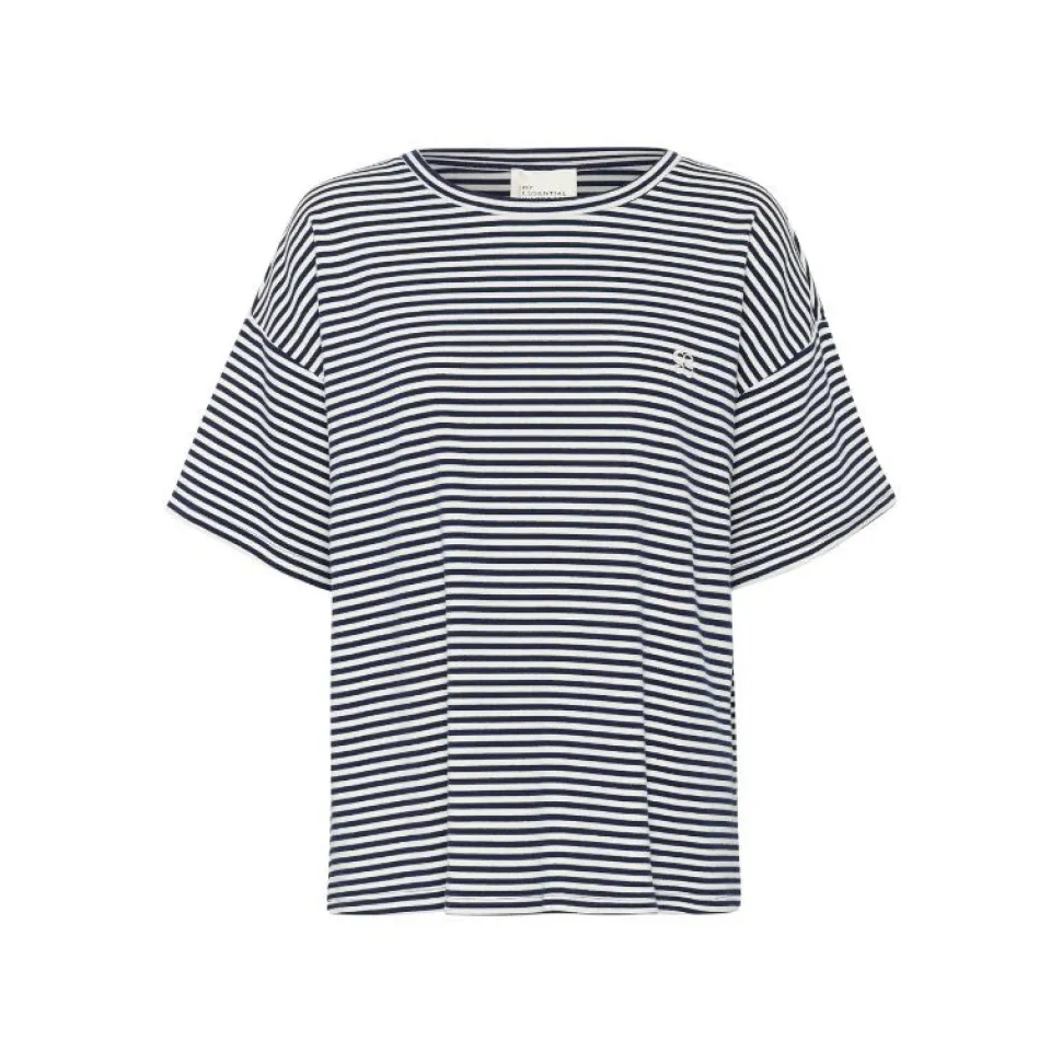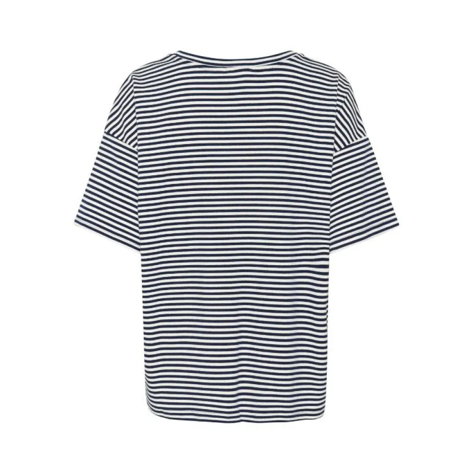 Det stribede design tilføjer et grafisk touch, der gør T-shirten nem at style både til jeans, shorts eller under en blazer for et cool, afslappet look.