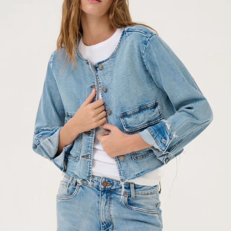 Den lyse, retro-inspirerede vask tilfører et vintage touch, der passer perfekt til både afslappede og mere stilfulde outfits.