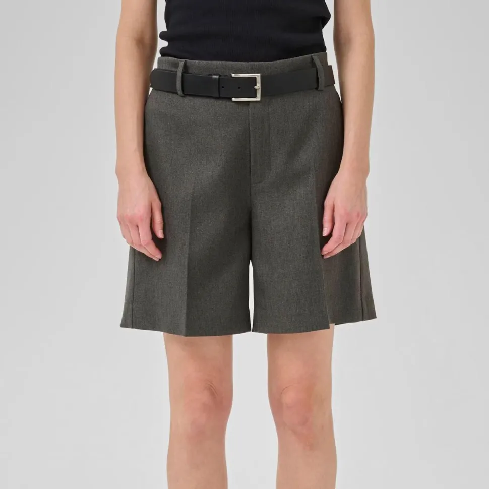Moderne shorts, der er skabt i et regulært snit med knælængde, hvilket giver en skarp og moderne silhuet. Den strukturerede kvalitet og den stilfulde linning understreger et raffineret design, der er lige så komfortabelt, som det er alsidigt. Ideelle til til både hverdag og fest, hvorfor de er en essentiel base i garderoben.
