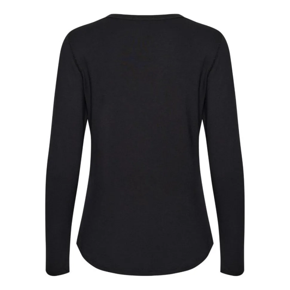 The modal blouse er en elegant sort bluse med lange ærmer, designet med en klassisk rund hals og en slank, flatterende pasform. Den har en hoftekort længde, som gør den nem at style til både hverdag og mere formelle anledninger. Blusen er fremstillet i en blød og åndbar modal-kvalitet (95 % TENCEL™ modal og 5 % elastan), hvilket giver en behagelig stretch og komfort hele dagen. Den fungerer perfekt både som et lag under en blazer eller cardigan – eller alene for et enkelt, stilrent look.
