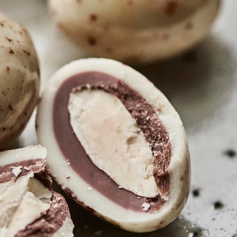 Delikate mandler, som er dyppet i både mælke- og hvid chokolade, der er kombineret med et strejf af karamel. En ren klassiker, der rammer plet med både sødme og crunch. Mandlerne er ideelle som en gave til værtinden eller til en af sine nærmeste. Det er en lille gestus, som gør et varigt indtryk.