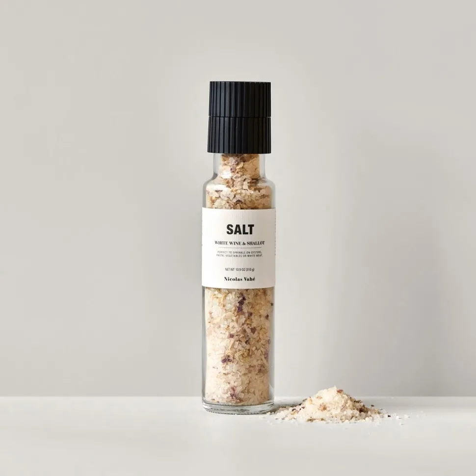 Elegance i hver krystal. Denne havsalt kombinerer hvidvin og skalotteløg og giver retterne en subtil, udsøgt smag. Ideel til fisk, fjerkræ eller som et sofistikeret twist i saucer – en enkel måde at løfte hverdagens måltider til gourmetniveau. Små detaljer, stor forskel – luksus i hver krystal.