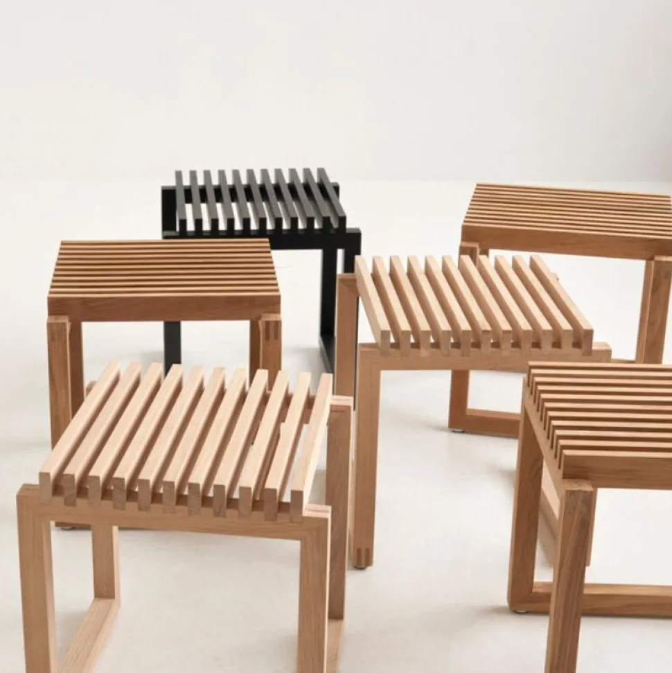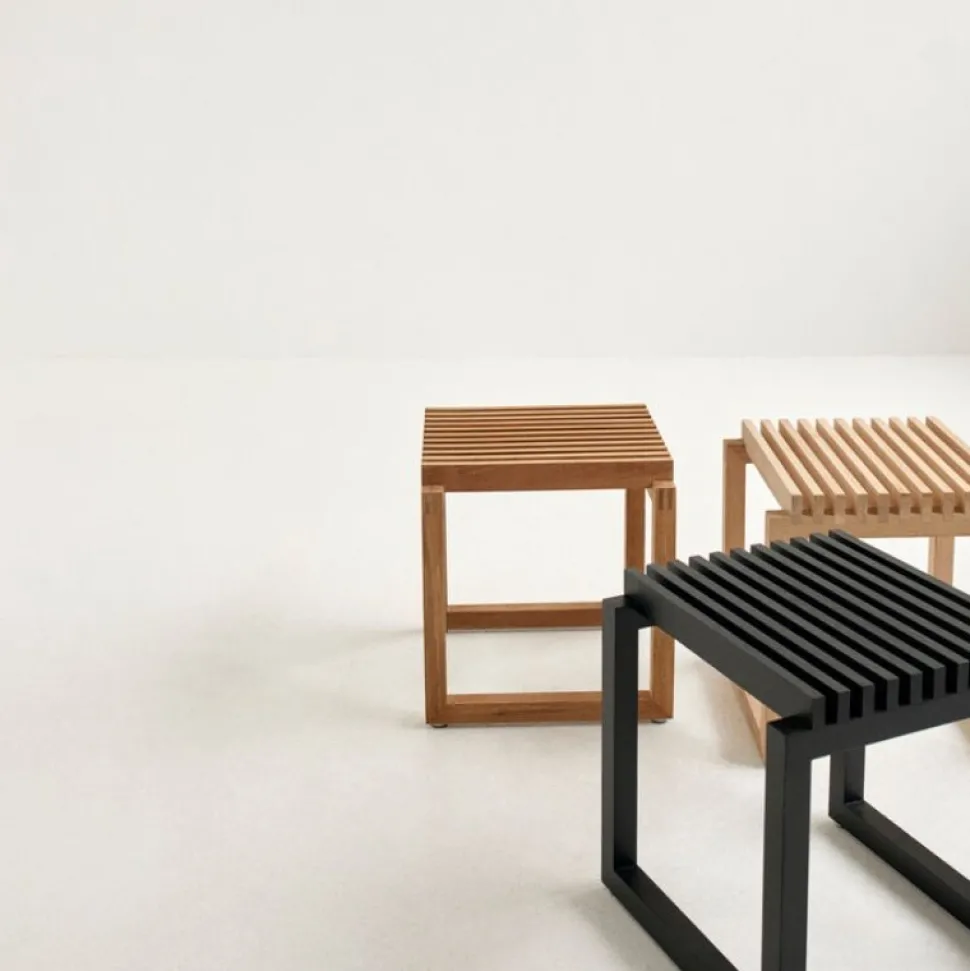 Den stilfulde Cutter-serie begyndte som en udfordring til det nostalgiske og romantiske design, der i mange år har været kendetegnende for havemøbler i træ. Den smukke Cutter taburet fokuserer på rene, enkle linjer og et elegant design. Skamlen har flere anvendelsesmuligheder, og møblets funktion kan ændres i takt med at behovene forandres.
