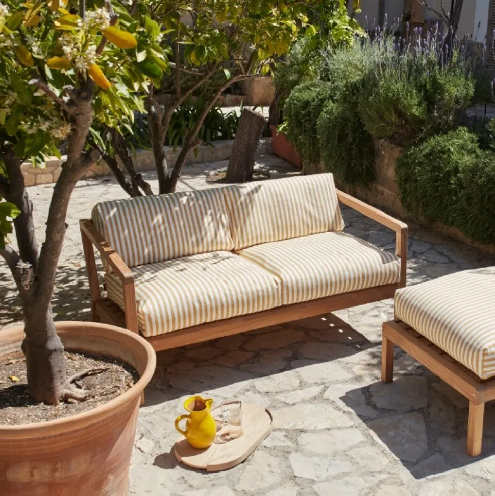 Enkel og tidløs sofa, der er ideel til socialt samvær og luksuriøs afslapning udendørs. Virkelyst-serien er kendetegnet ved rene linjer, diskrete detaljer og høj komfort. Stellet er lavet af FSC-certificeret teak, som står i elegant kontrast til de bløde og behagelige hynder. Det robuste, vejrbestandige betræk er Oeko-Tex®-certificeret, ekstremt farve- og lysægte samt vand- og smudsafvisende. Hynden tørrer hurtigt, idet skummet har en åben cellestruktur, som vand og luft kan passere igennem. Sofaen er designet i samarbejde med Says Who.