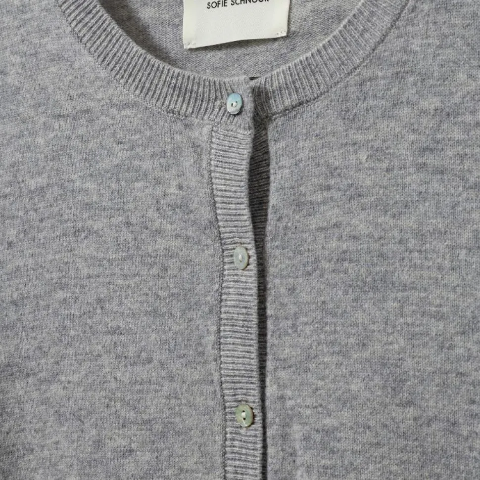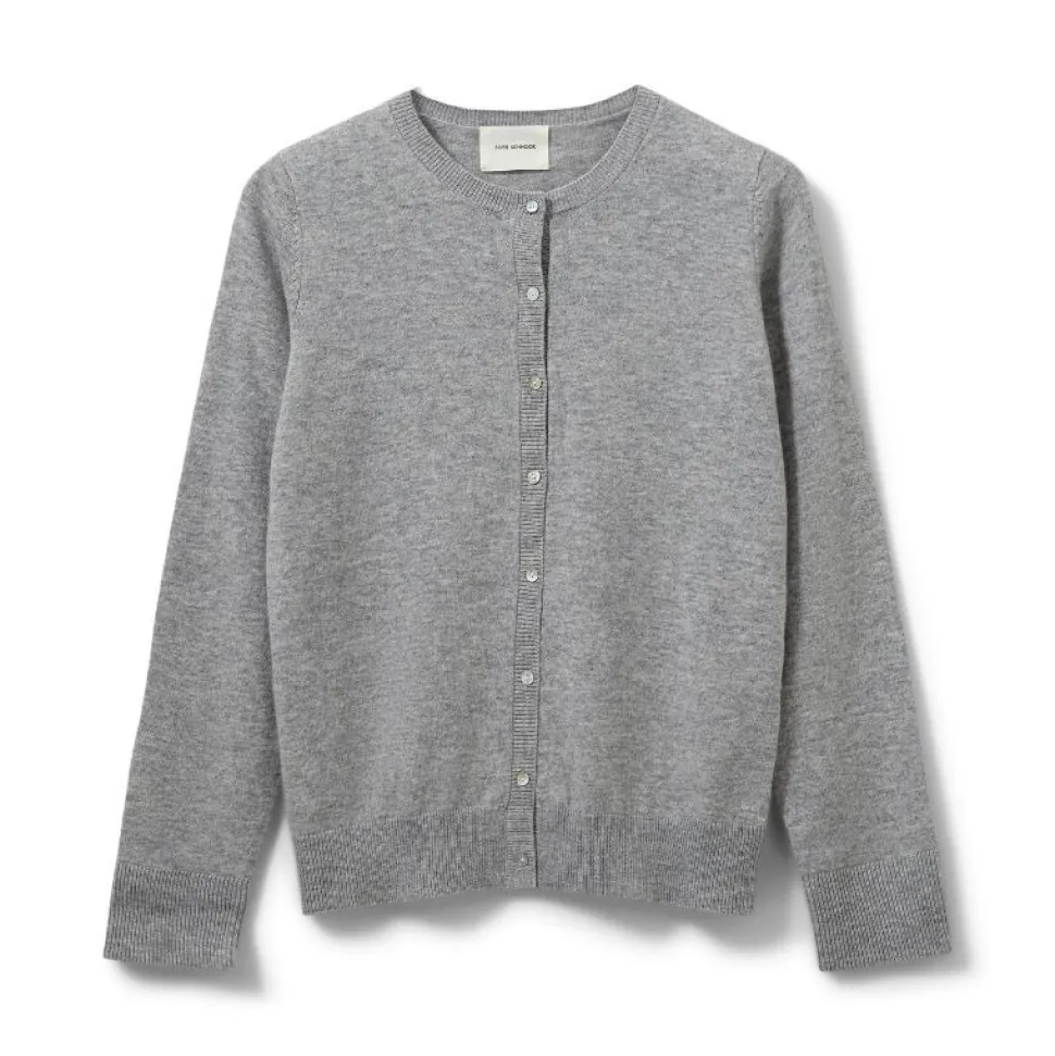 Denne klassiske grå cardigan fra Sofie Schnoor er en alsidig garderobefavorit, du kan bruge sæson efter sæson. Den er fremstillet i 100% blød merinould, som både varmer og ånder, og dermed sikrer komfort hele dagen.