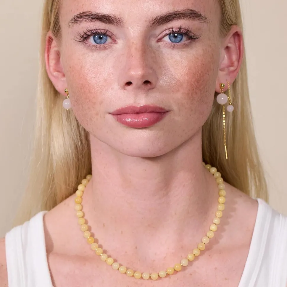 Yndefuld halskæde i den fineste og blideste farvenuance. Halskæden er skabt med formålet om at hjælpe med at finde mere glæde, velvære og fred. Stenen siges at tiltrække lykke, velstand, øge selvtillid og indre balance. Håndlavet med omhu og præcision er halskæden mere end blot et smykke – dén er et udtryk for naturlig skønhed og positiv energi. Halskæden er unika, idet krystaller aldrig er ens.
