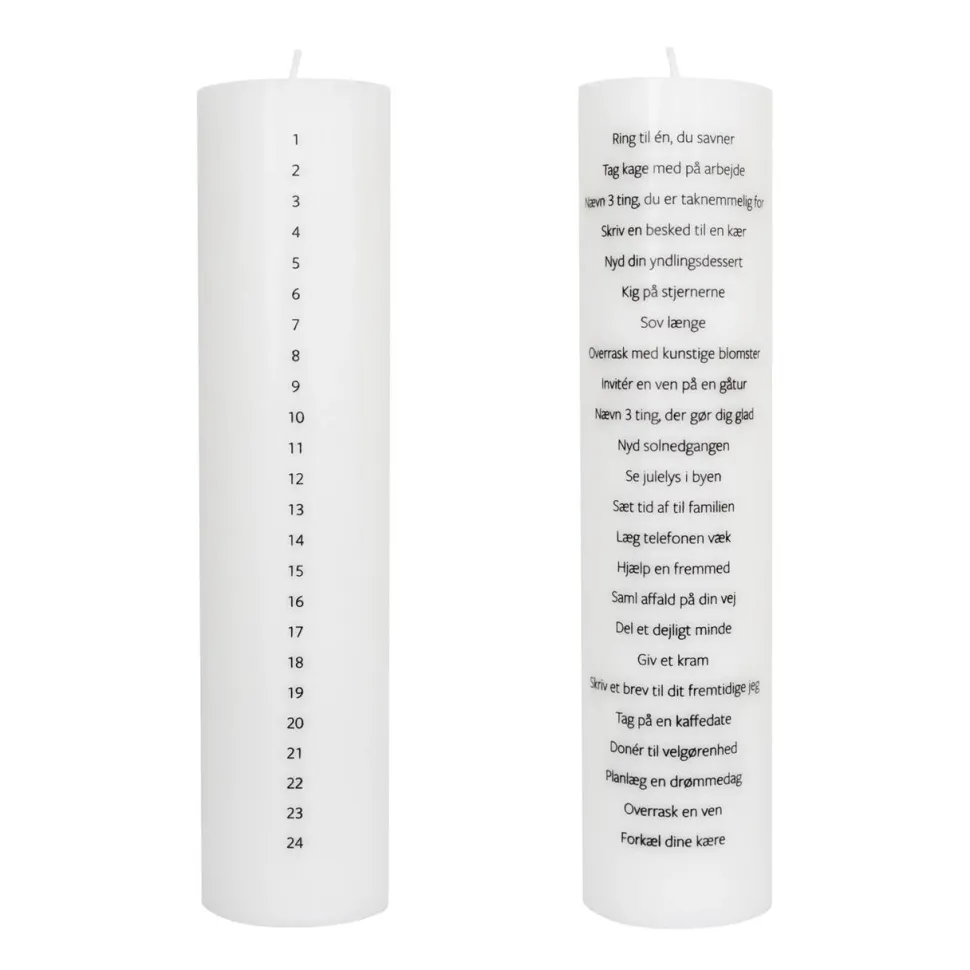 Beundringsværdigt kalenderlys, der på fineste vis bringer et strejf af eftertænksomhed. Hver dag frem til juleaften tæller lyset ned og inviterer til stille pauser – stunder, hvor hverdagen sænker tempoet, og varme minder skabes. Lyset kombinerer tradition og funktionalitet, alt imens det bringer lys i en ofte travl måned. Kalenderlyset er ideel som en oplagt gaveidé – en kærlig gestus, der spreder varme og inspiration til dem, man holder af.