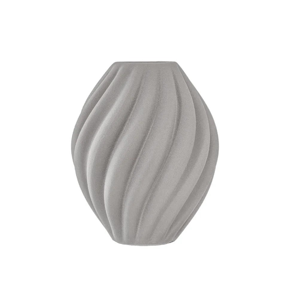 Fin og iøjnefaldende vase i det smukkeste design. Vasen er med sin skulpturelle og moderne form designet til at være et central designobjekt i boligindretningen. Vasen er med sine bølgede linjer og strukturelle, rå sandinspireret overflade en yndig tilføjelse til hjemmet – uanset placering heraf. Hver enkelt vase er håndlavet og således helt unik.