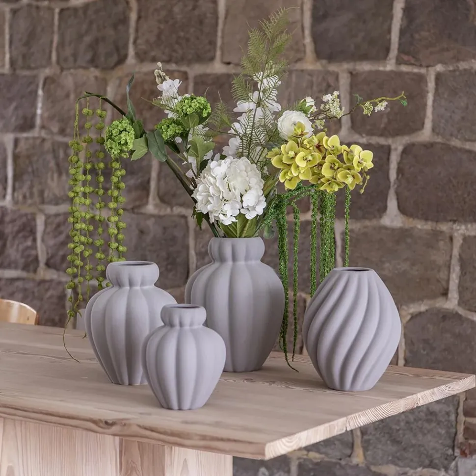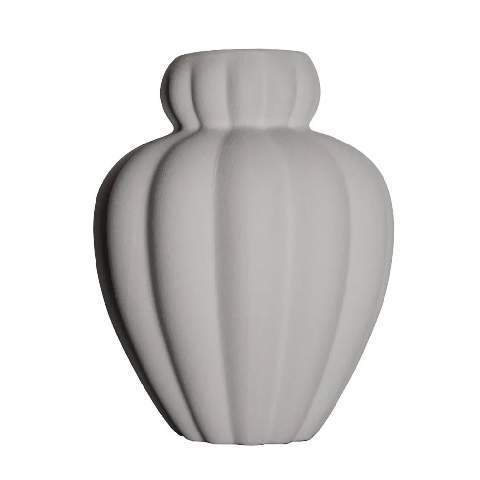 Yndefuld og skulpturel vase, der emmer af elegance og moderne formsprog. Vasen er designet til at være et centralt designobjekt i boligen. Vasens bølgende linjer, strukturelle sandinspireret overflade og naturlige farvenuance tilfører et unikt touch til indretningen. Hver enkelt vase er håndlavet, hvorfor der kan forekomme variationer og andre ufuldkommenheder.