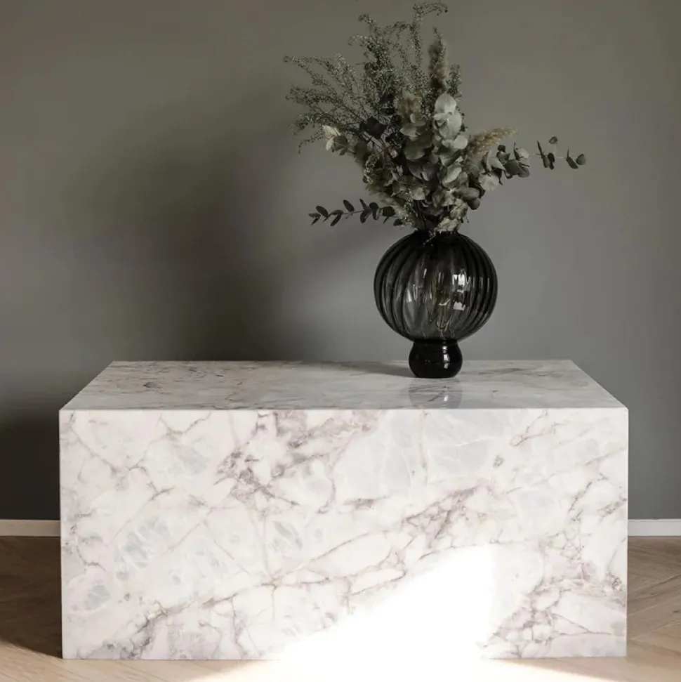 Smuk kombination af moderne og tidsløst. Phantom cube er et eksklusivt sofabord, hvor hvert bord er helt unikt. Marmordesignet er skabt over millioner af år i naturen, derfor har samtlige borde sin egne enestående særpræg i både farve og mønster. Sofabordet er åben i bunden og derfor ikke justerbar.