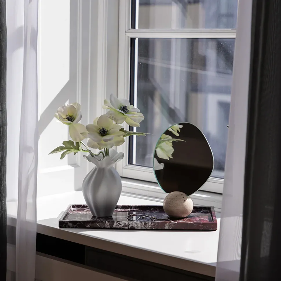 Bakken er fremstillet i marmor – en natursten, hvorfor hvert enkelt design er unik i både farve og mønster. Qua materialevalget og strukturen heri emmer bakken af moderne eksklusivitet og tidløs luksus. Bakken er således ideel til skabelsen af fine og inspirerende stilleben i hjemmet.